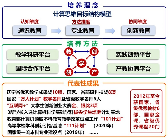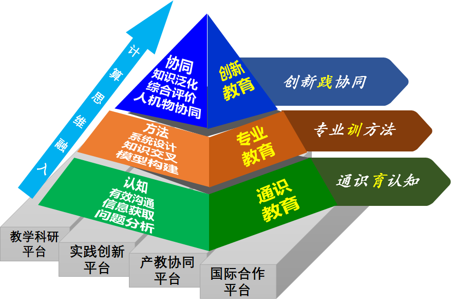 思维能力培养处于人才培养的顶端,新工科的重要内涵是各专业思维与计算思维的创新融合。本成果面向新一轮科技革命和产业变革对新工科人才培养的新需求,由大连理工大学牵头,会同其他完成单位,在教育部新工科教改项目、国家本科教学工程项目等支持下,对新工科人才培养的理论和方法进行了系列研究,提出了计算思维关键性价值的新理念,构建了计算思维目标结构模型,打造了教学科研、实践创新、产教融合、国际合作四个基础平台,针对通识教育、专业教育和创新教育三个层面,提出并践行思政融入的“通识育认知,专业训方法,创新践协同”贯通式计算思维培养模式,进而发挥计算思维对传统专业改造升级和交叉融合的重要支撑作用,成为新工科人才培养过程的重要推动力。